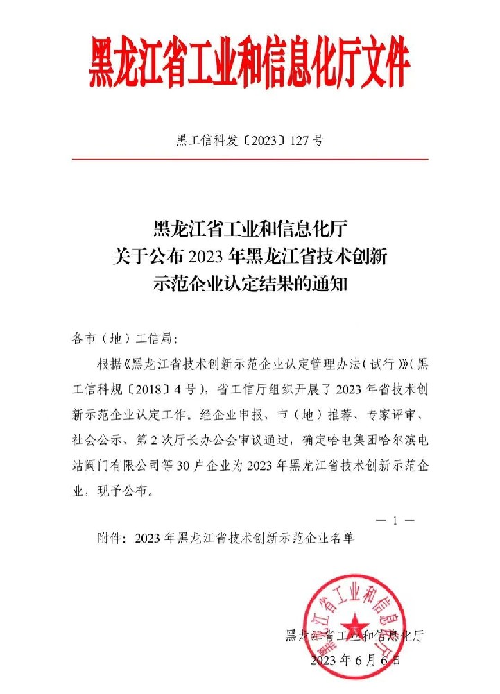“黑龙江省技术创新示范企业”是企业整体技术水平在同行业居于领先地位,在行业中创新体系比较完善、技术创新能力较强、创新业绩显著,并且具有重要示范和导向作用的企业。入选“技术创新示范企业”是对企业在行业领先创新能力和显著创新示范作用的充分认可。